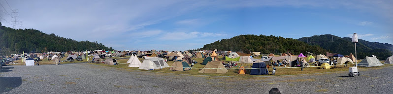 出来るだけ駐車場から近いところに設営したいな~と妻と言っていたのですが、近いところは既に前夜祭組が設営済み。しかも斜面になっており、登りきったところに平坦地が有りました。